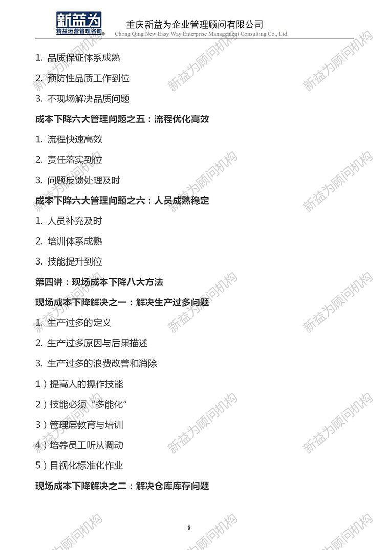 提高產品質量、降低生產成本、縮短交期、增加利潤,讓管理更系統科學,執行力更強